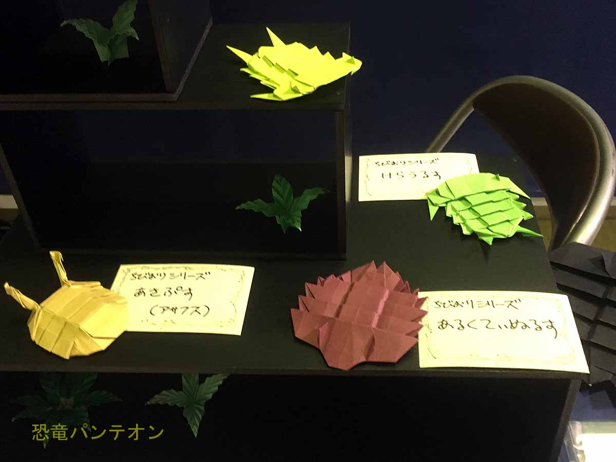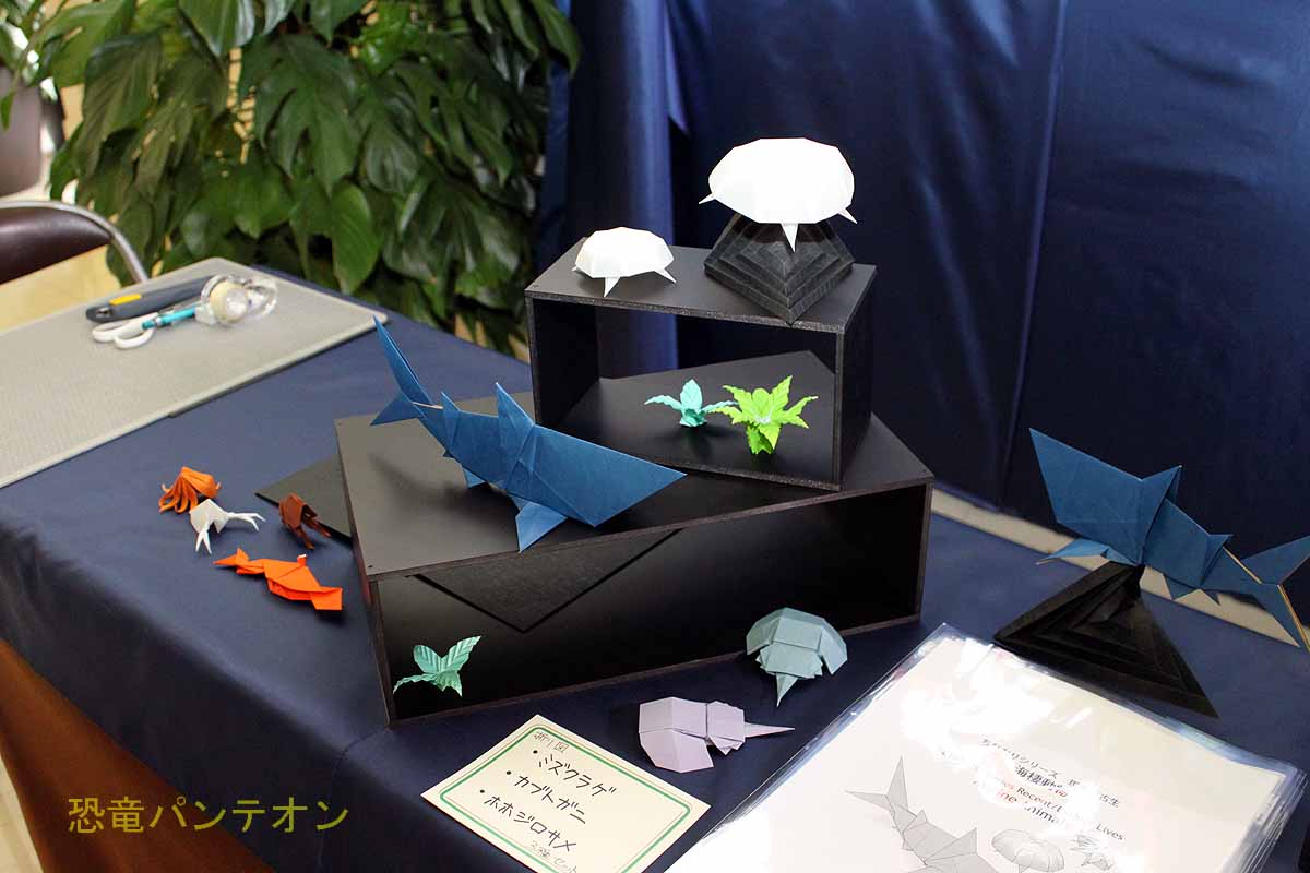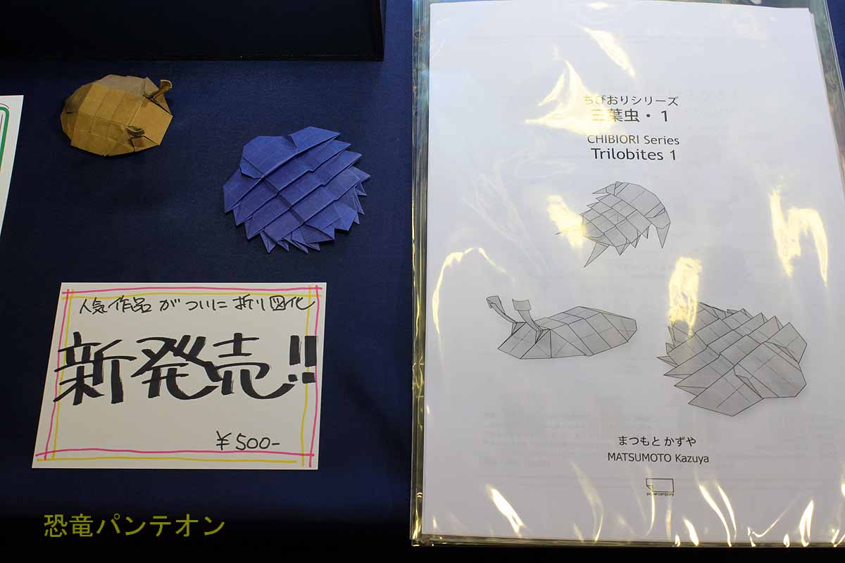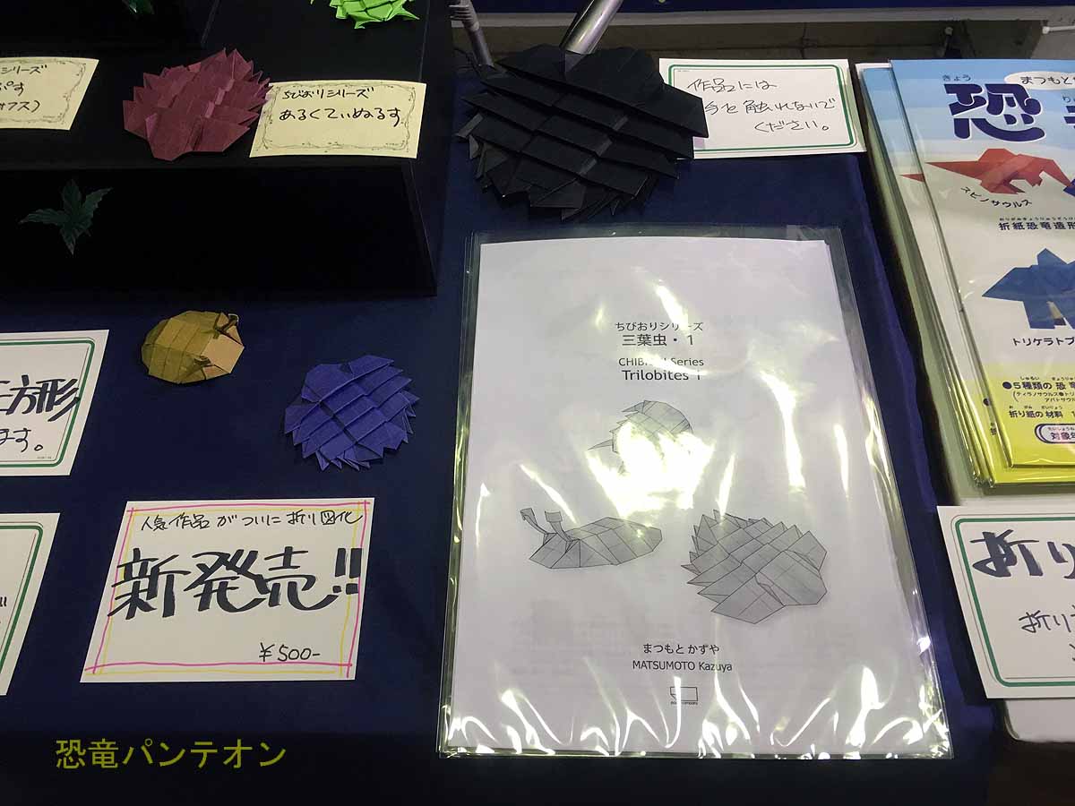 今年はより立体的に折るとともに、展示も工夫してあります。もちろん、新発売のちびおりシリーズ三葉虫折り図も販売しています。