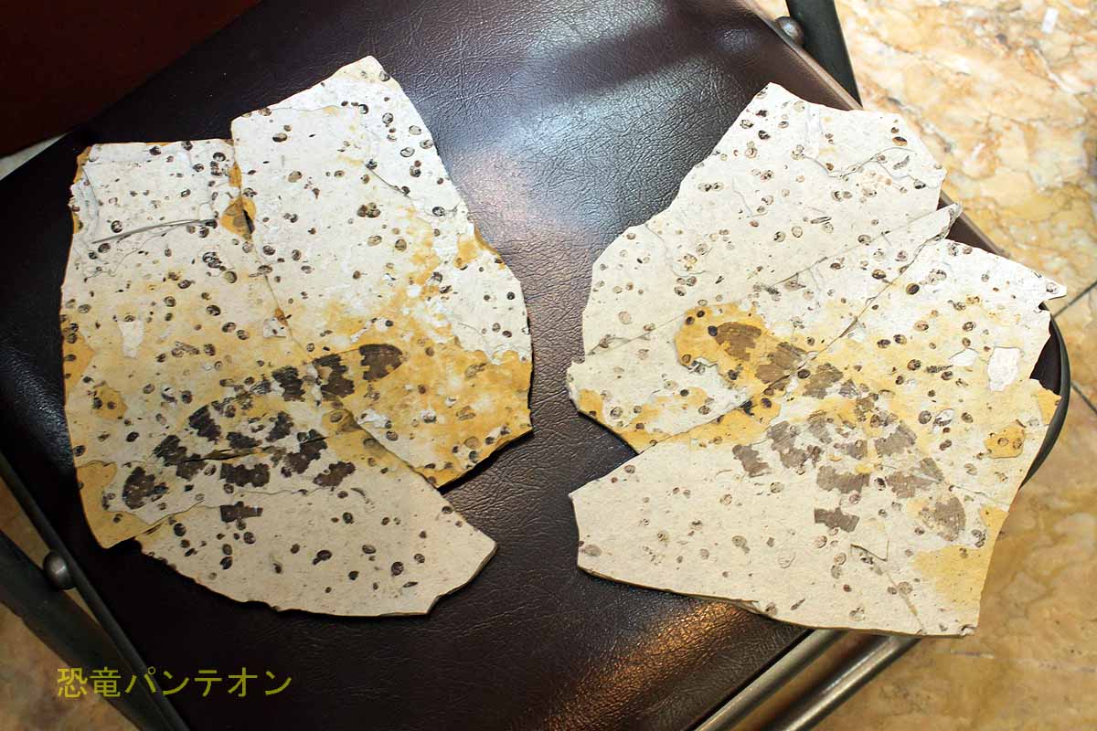 今回の目玉商品の1つは、昆虫。写真2枚は遼寧省、北票の義県層産。結構大きくこれなら小型羽毛恐竜のエサになりうるかと思いました。もう1枚は内蒙古産です。