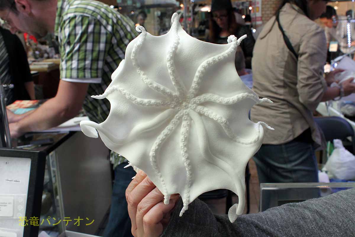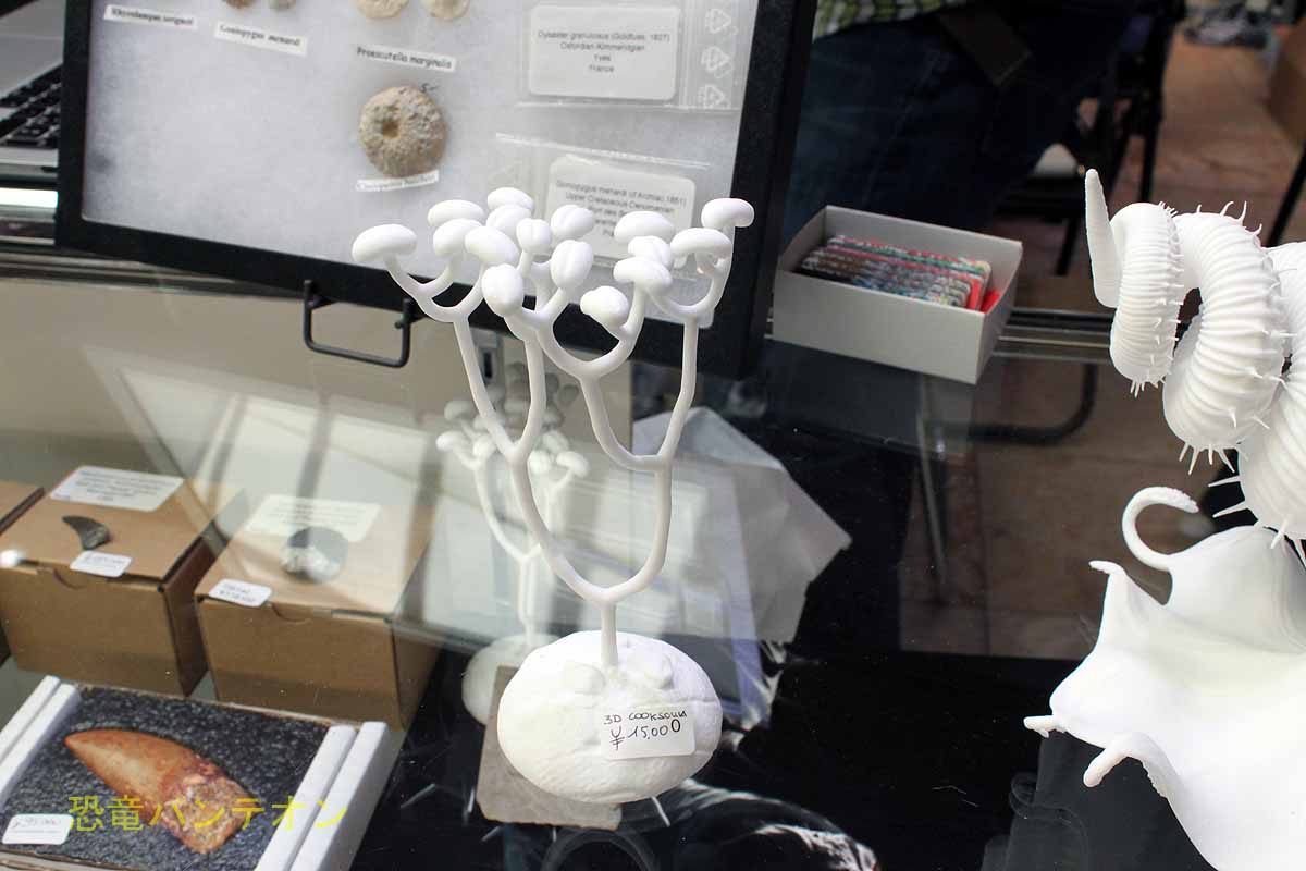 これまでのような恐竜骨格展示はありませんでしたが、3Dプリンタの製品とおぼしきものと、そのカタログらしきものが目新しいでしょうか。