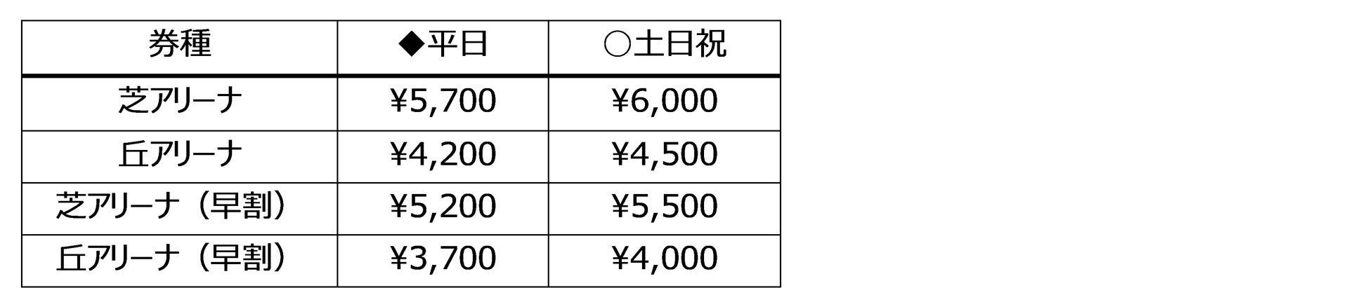 ※芝アリーナは芝生の上に座ってご覧いただくお席です。丘アリーナは、椅子やひな壇にお座り頂くお席です。