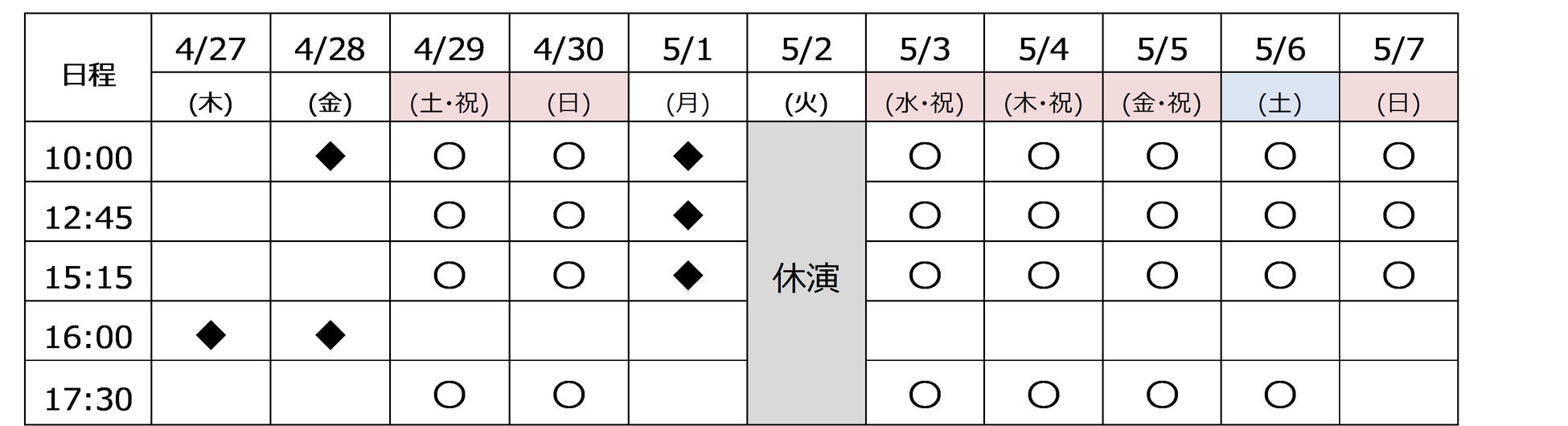 日程:2023年4月27日(木)~5月7日(日)※全33公演
